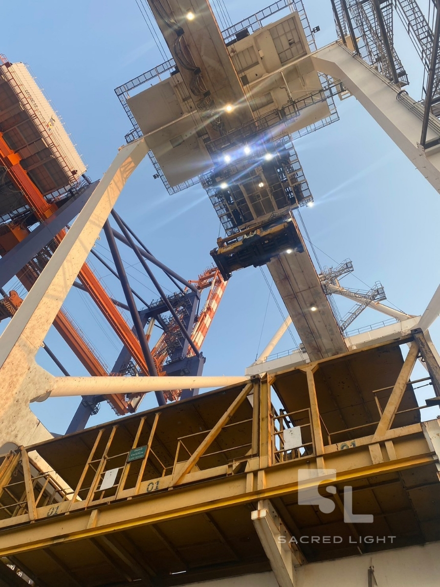 ทีมงาน Sacred Light ได้รับความไว้วางใจให้ดำเนินการติดตั้ง โคมไฟฟลัดไลท์ LED รุ่น MASTERPRO-X Series กำลังไฟ 200W และ 400W บนเครนยกตู้สินค้าขนาดใหญ่ในพื้นที่ ท่าเรือแหลมฉบัง จังหวัดชลบุรี เพื่อเพิ่มความสว่างในพื้นที่ขนถ่ายตู้สินค้าในเวลากลางคืน ซึ่งต้องการแสงสว่างที่สม่ำเสมอ ครอบคลุม และทนทานต่อสภาพแวดล้อมทางทะเล