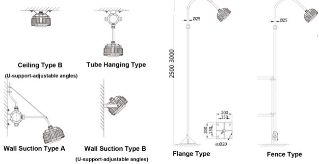 Mounting Styles Ceiling,Tube Hanging,Side Wall,Pole